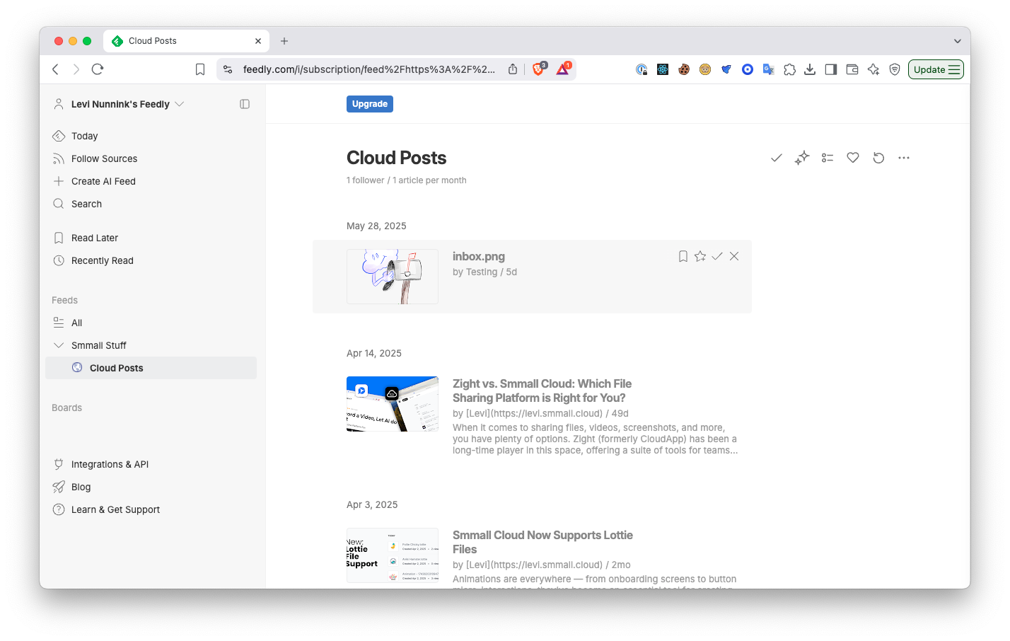 <figure><img src="https://3339468055-files.gitbook.io/~/files/v0/b/gitbook-x-prod.appspot.com/o/spaces%2FC4uAXnQI1lFTPXLjdosr%2Fuploads%2FA8sYL2EOP81aUJKD7sZG%2Fimage.png?alt=media&#x26;token=591d31d2-88d6-4ceb-b7ec-3515e3b59510" alt=""><figcaption><p>Folder contents displayed in Feedly</p></figcaption></figure>