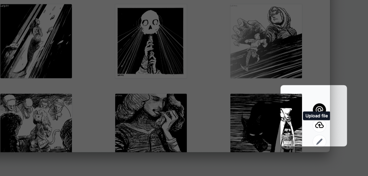 Uploads via the the file system picker are available by clicking the "Upload file" button on the bottom right.
