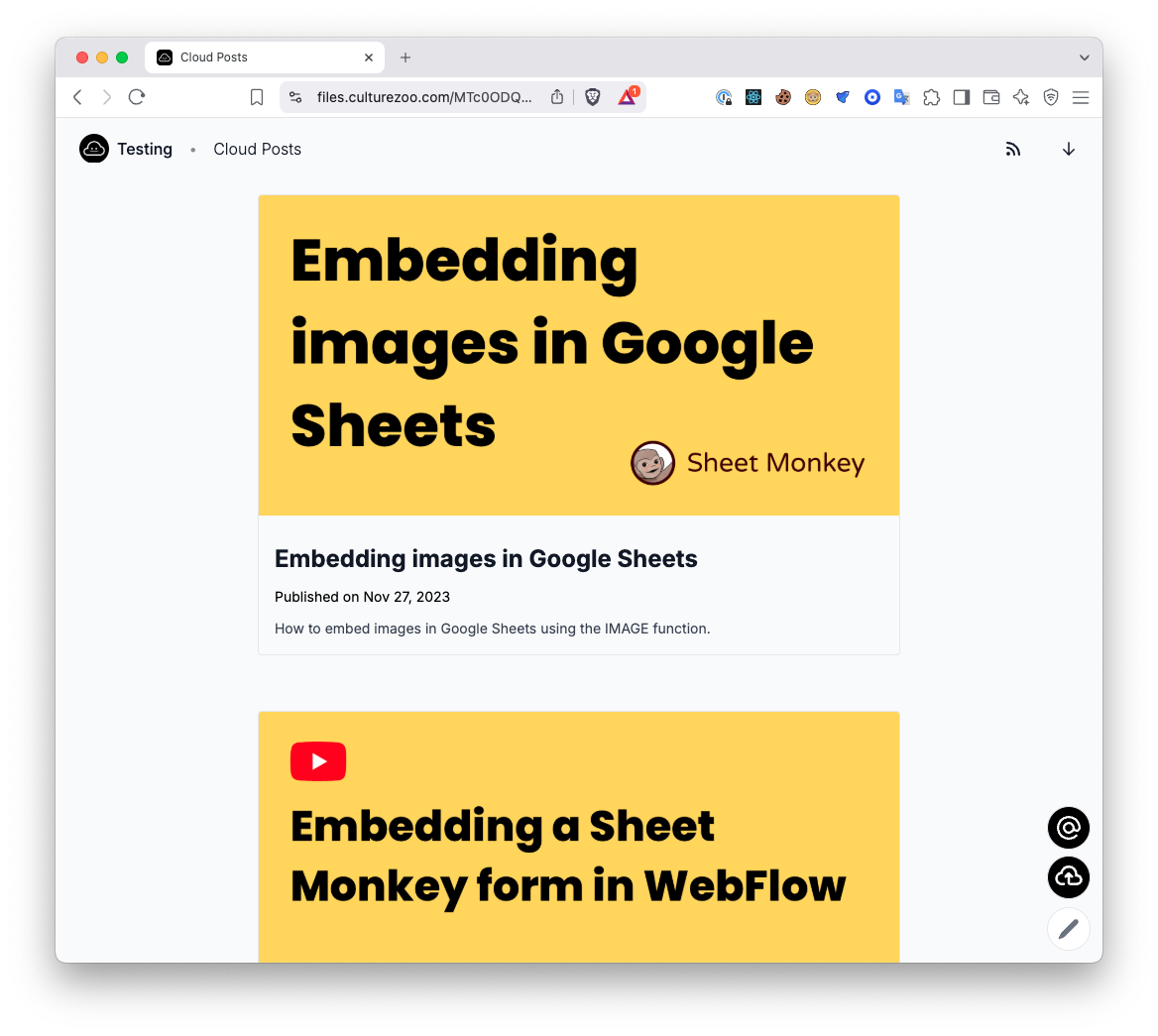 You can download the contents of [this folder](https://files.culturezoo.com/MTc0ODQ3OTA0MzU3MA) and use it as a starter to see what's possible with Smmall Cloud folders and blogging.